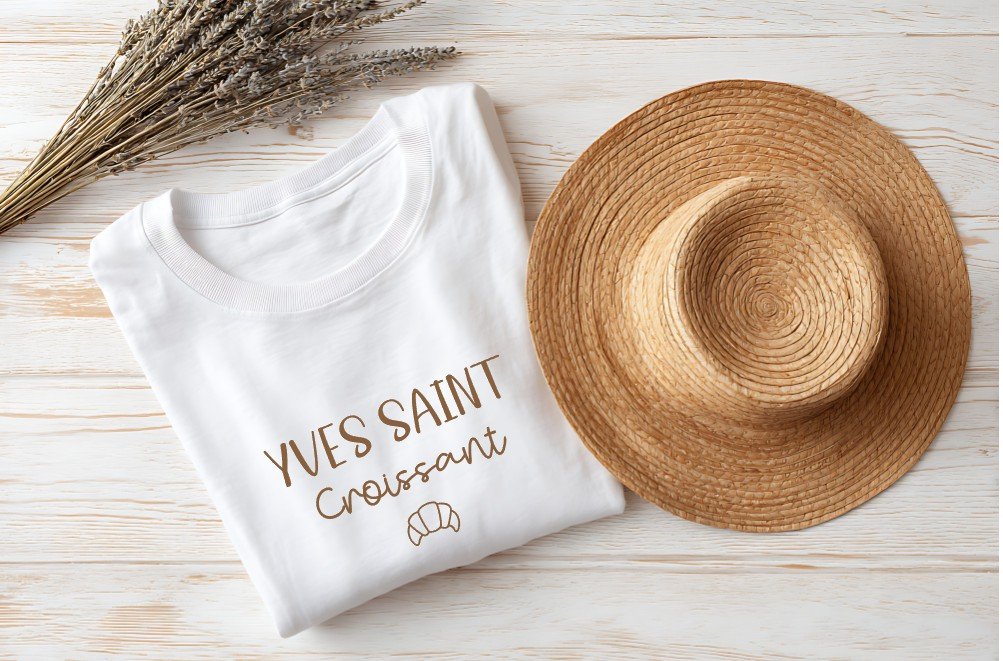 Unsere „Croissant Couture“-Serie bringt dir drei freche Sprüche direkt aus dem Mode-Olymp auf dein T-Shirt –