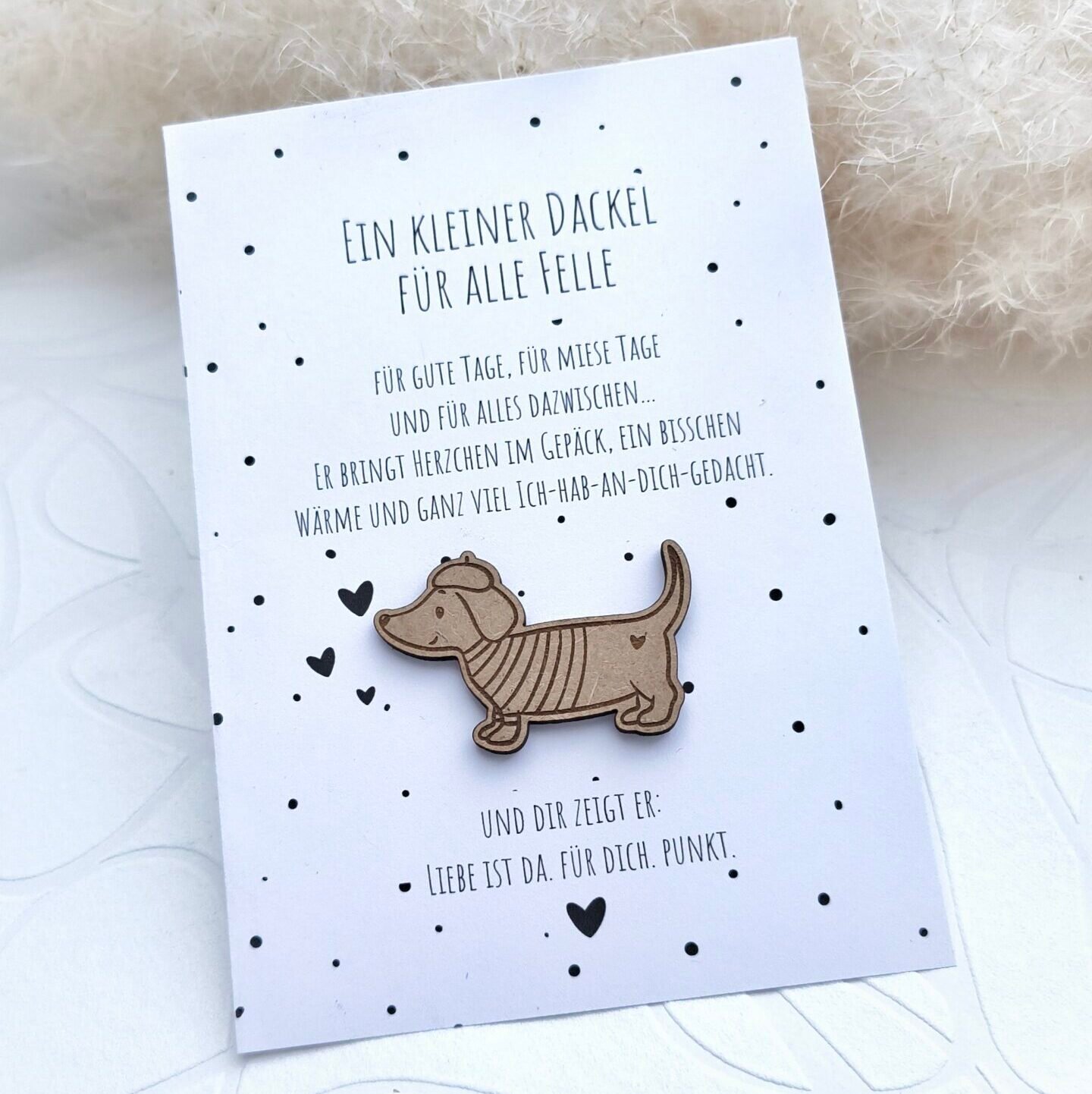 Der gelaserte Dackel aus Holz bringt Wärme, ein Lächeln und ein bisschen Valentinsmagie mit –