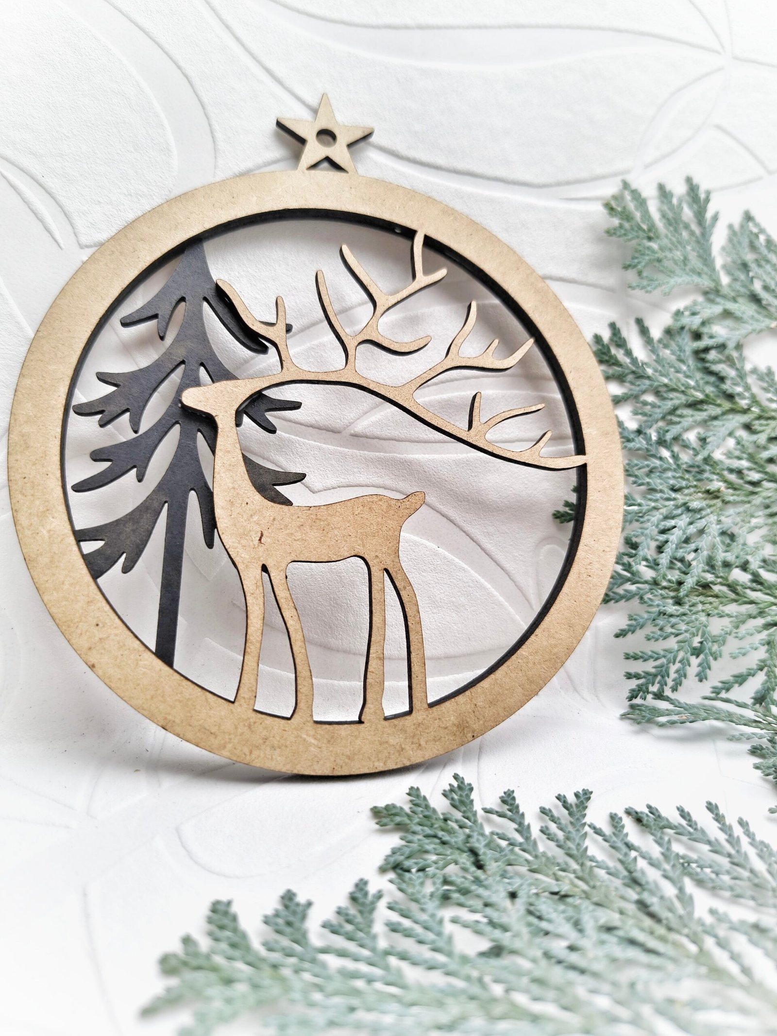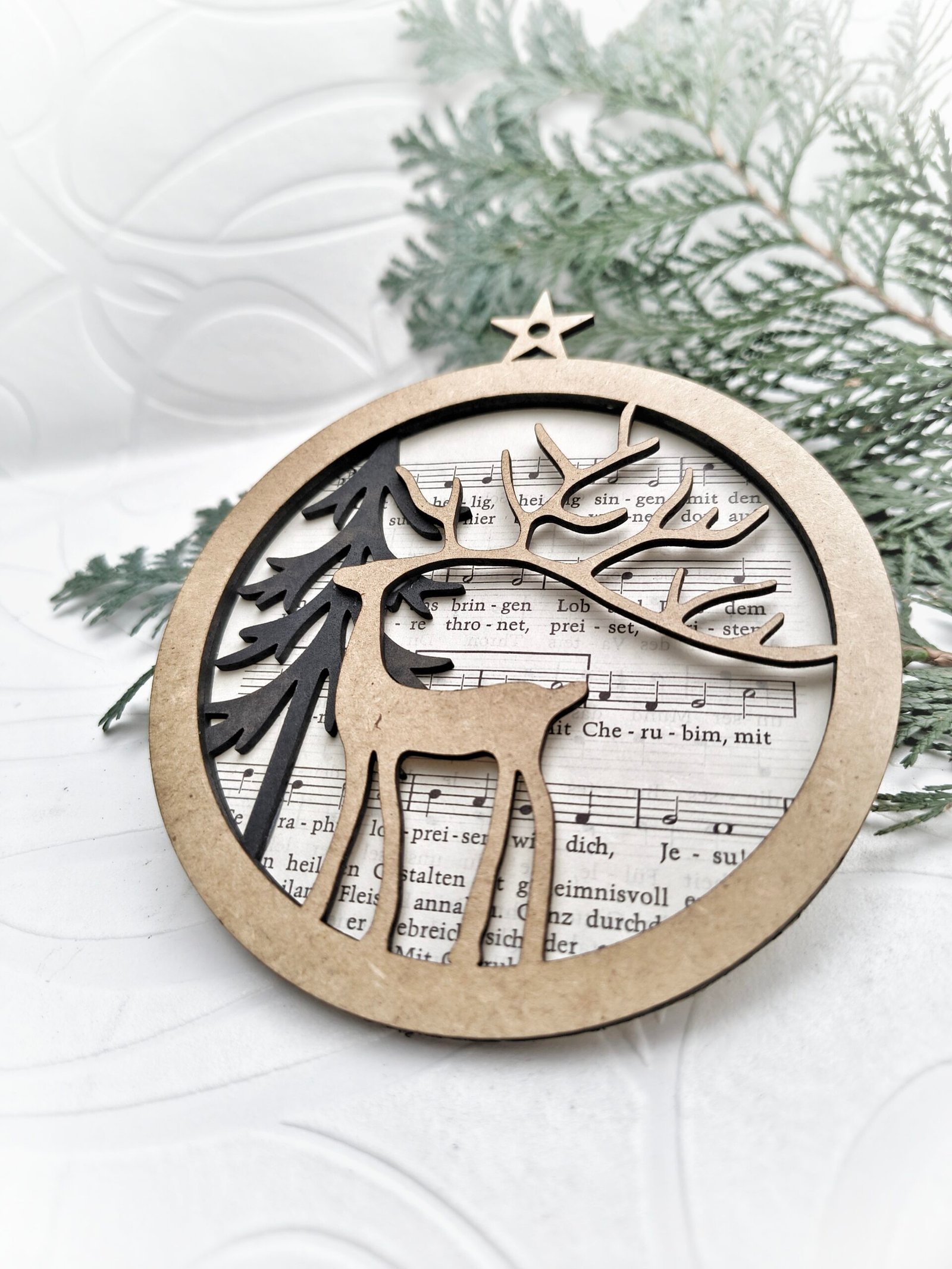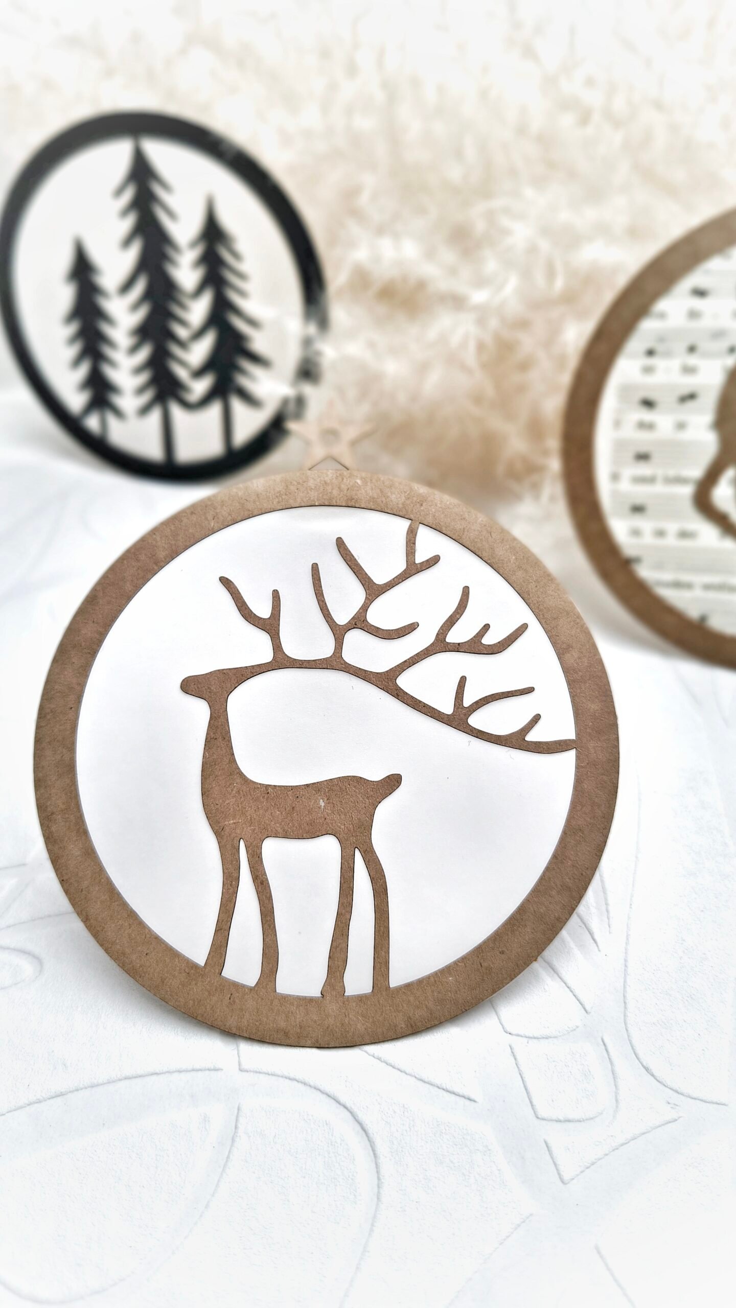 Die Kugel kann pur & schlicht oder als leuchtende 3D-Variante mit Lichterkette umgesetzt werden. Durch die mehrlagige Bauweise entsteht eine sanfte Tiefenwirkung, die das Motiv lebendig wirken lässt – besonders stimmungsvoll in der dunklen Jahreszeit.