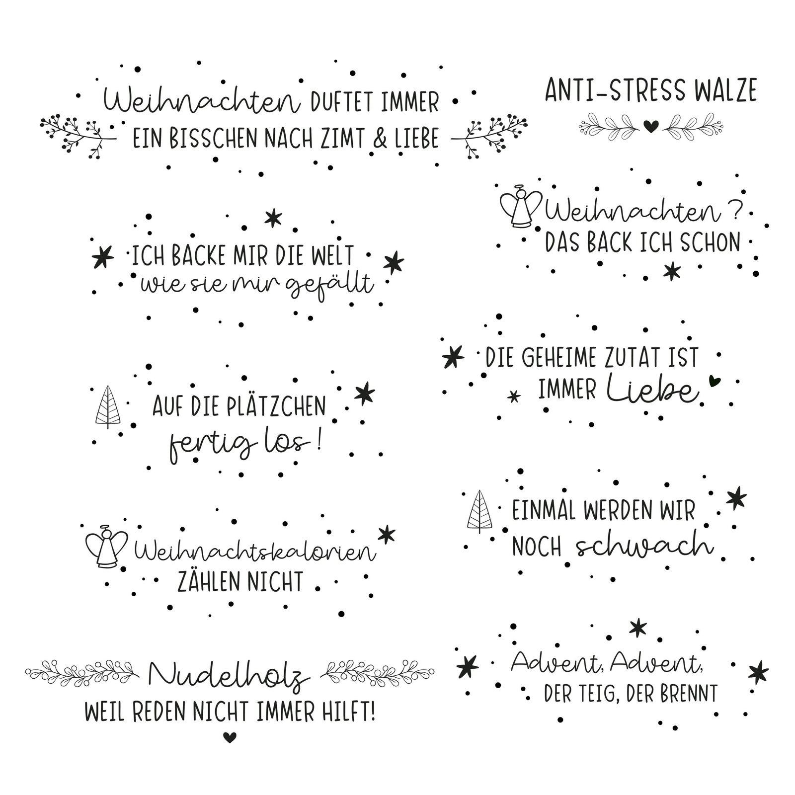 Diese Datei enthält 10 liebevoll gestaltete Sprüche rund ums Thema Backen, Teig und Weihnachtszauber –